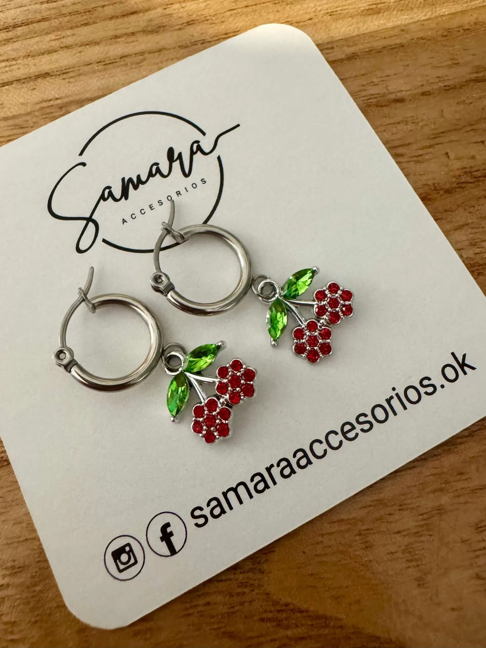 Argollitas de acero quirúrgico hipoalargénico con cubic y strass en el dije.