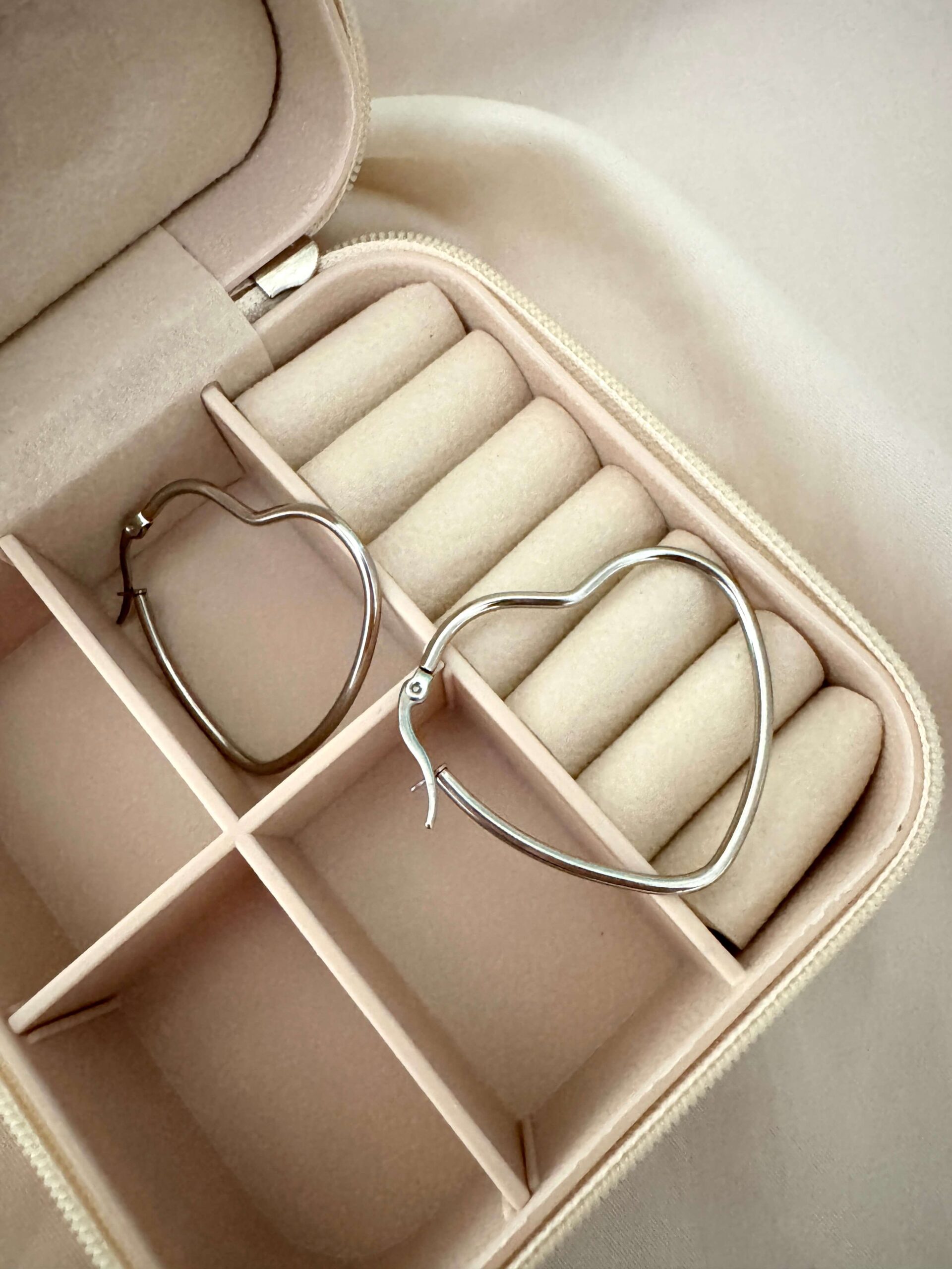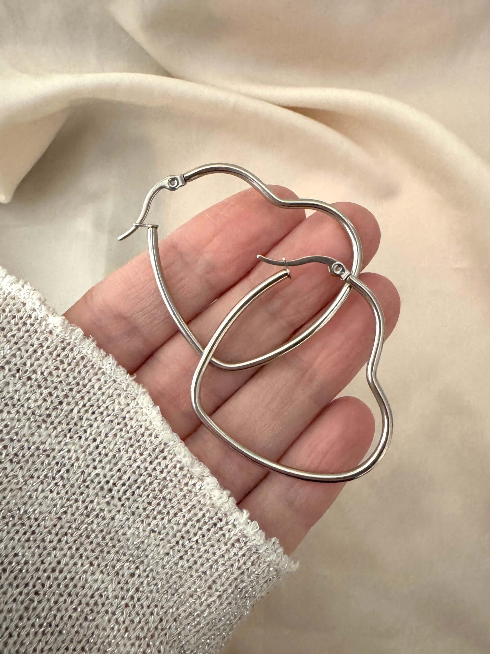 Argollas de acero quirúrgicas hipoalargénico con forma de corazón.