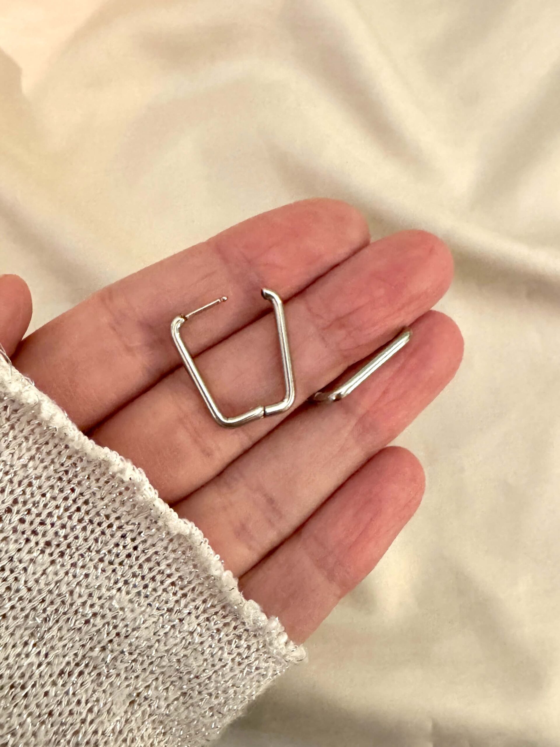 Argollas de acero quirúrgico hipoalargénico con cierre clic y forma rectangular. Súper lindas y clásicas.