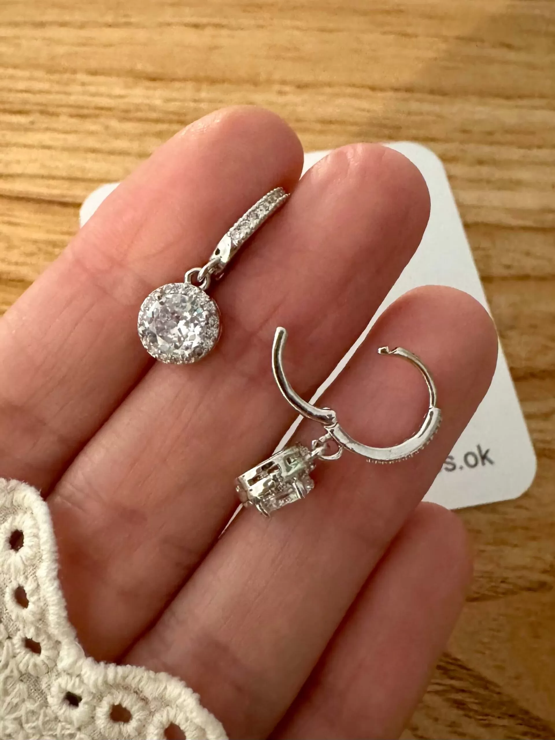 Argollas de acero quirúrgico hipoalargénico con cubic a lo largo de la argolla y en el dije.
