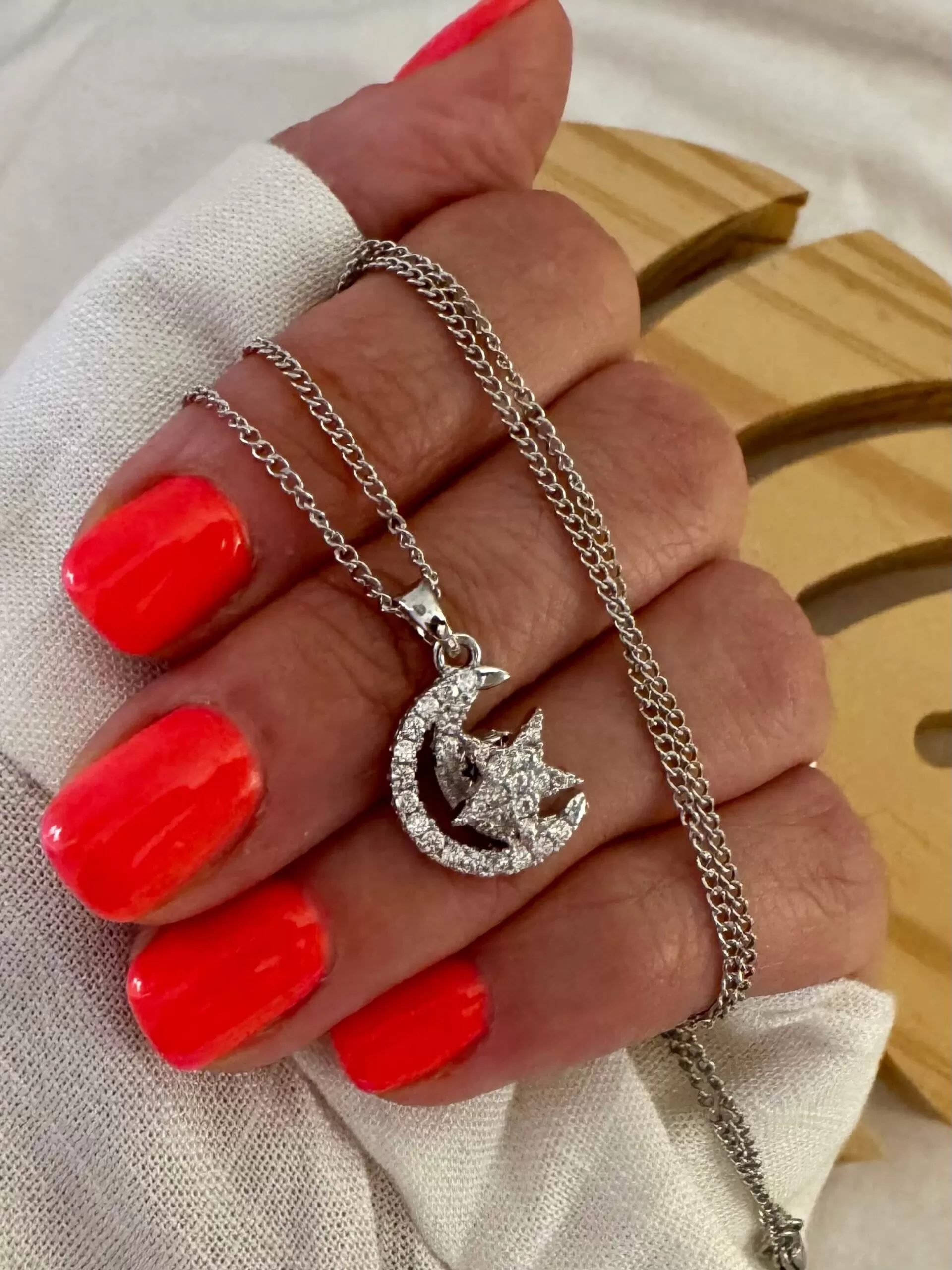 Collar de acero quirúrgico hipoalargénico con dije giratorio estrella cubic y luna.