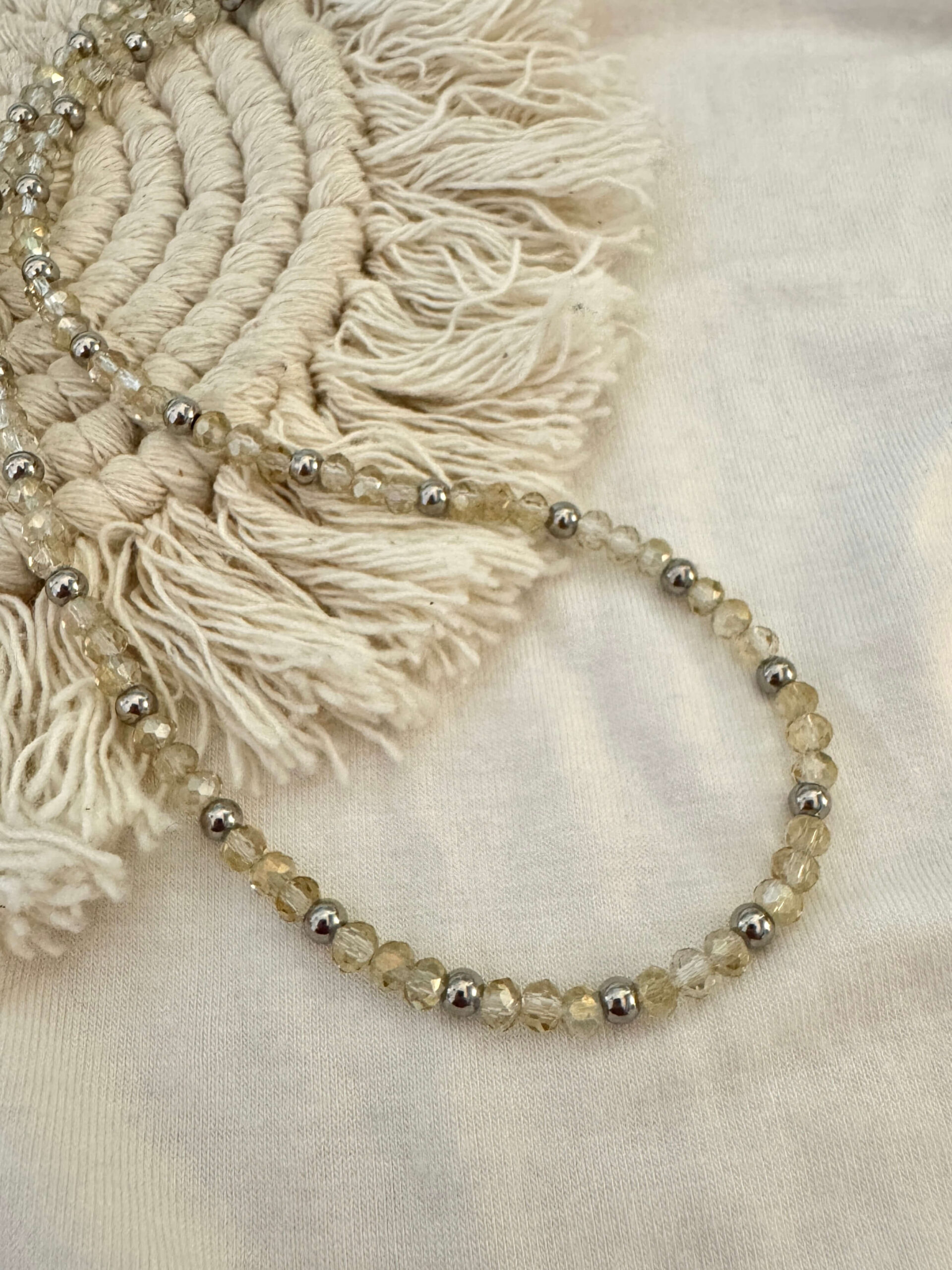 Collar de cristal de roca color champagne y acero quirúrgico hipoalargénico.