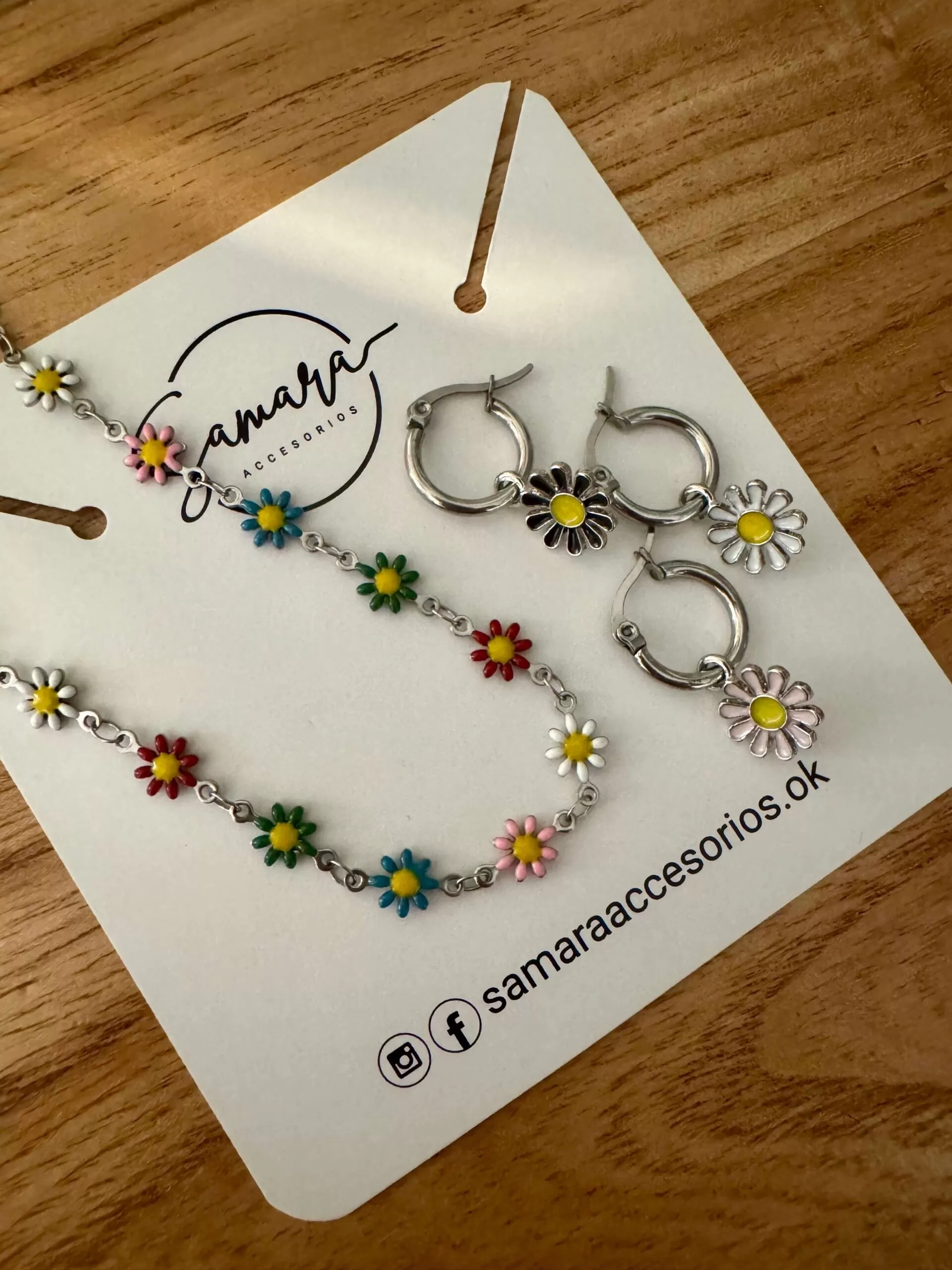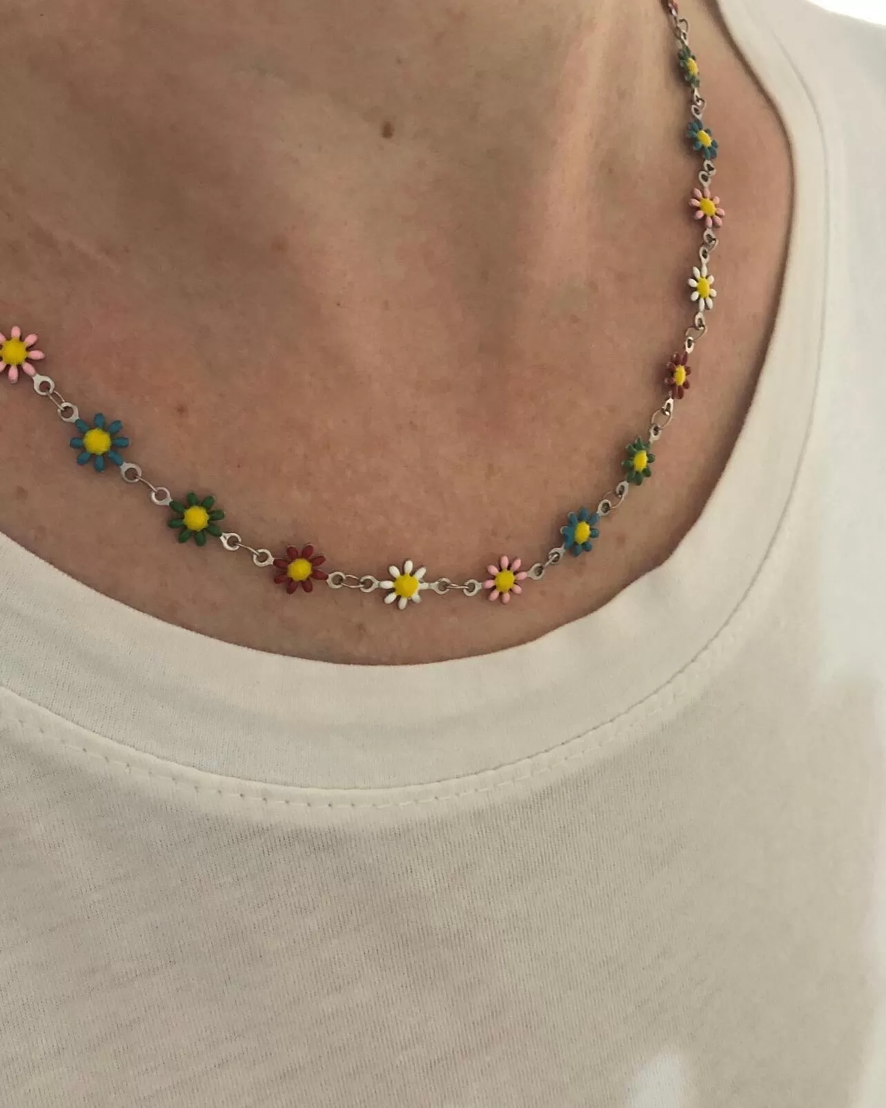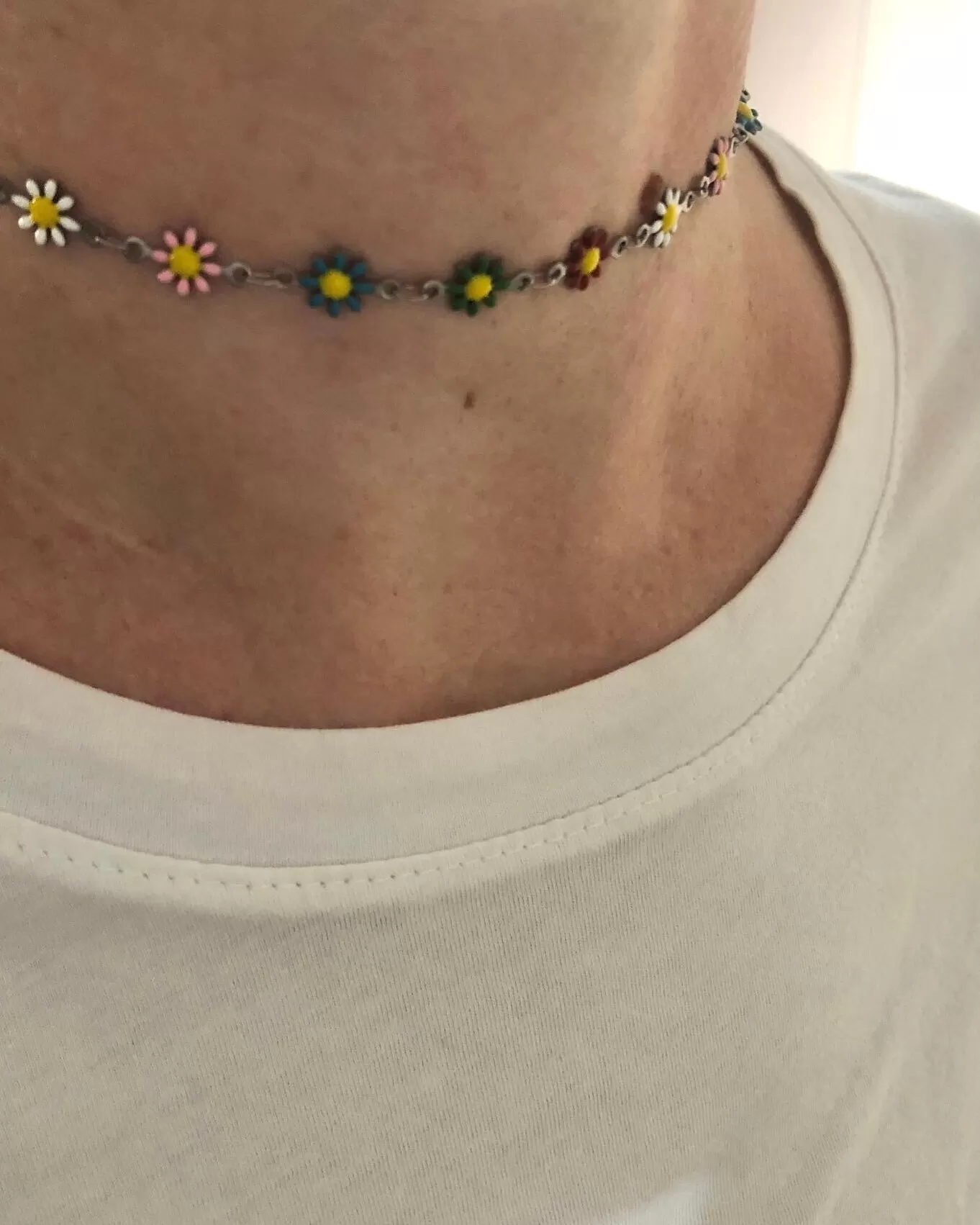 Collar de acero quirúrgico hipoalargénico con margaritas multicolor.