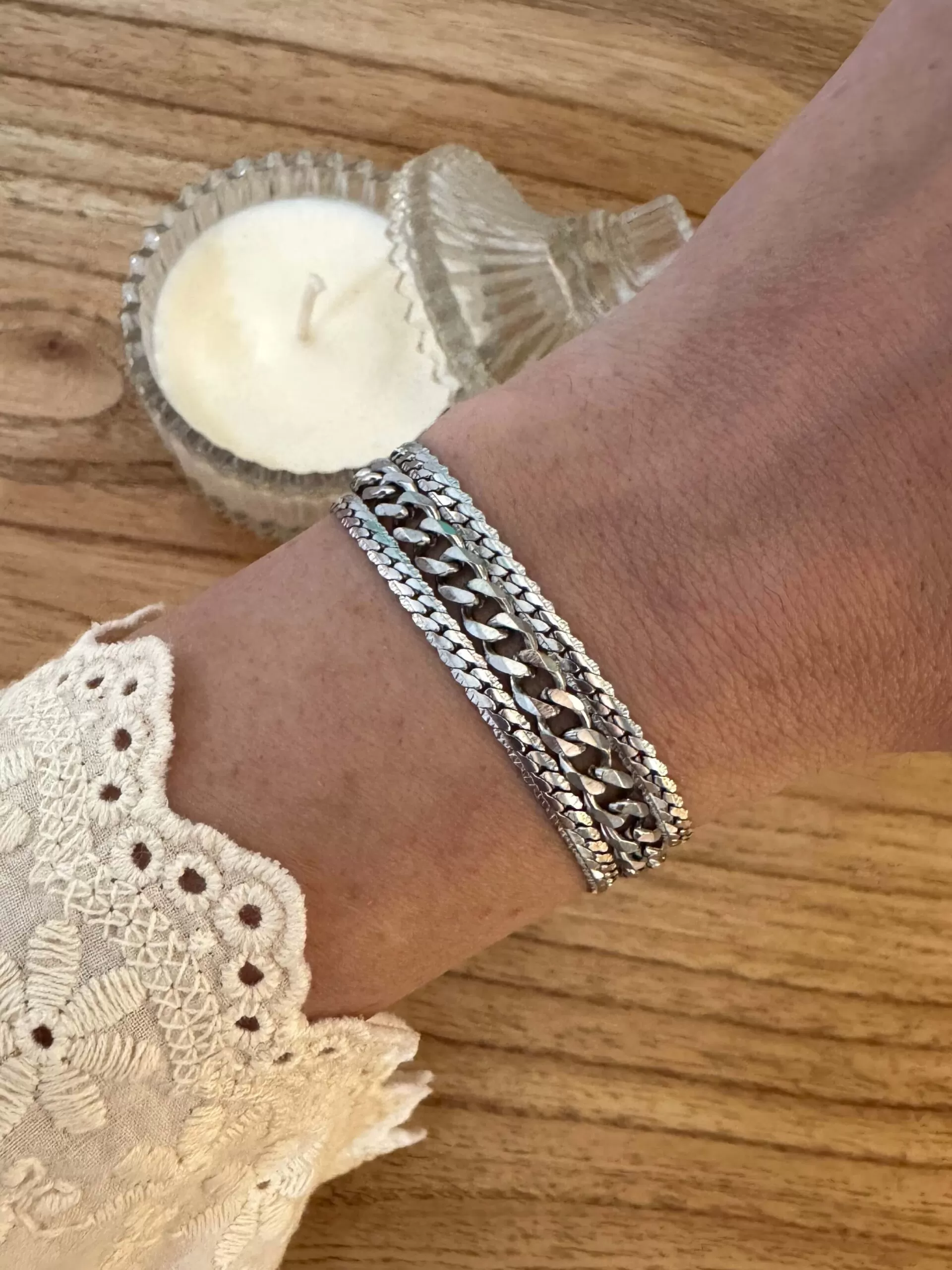 Pulsera de acero quirúrgico hipoalargénico con triple cadena.